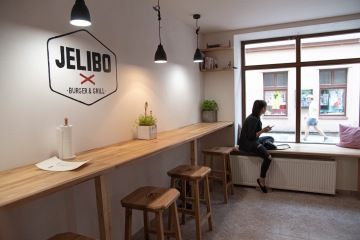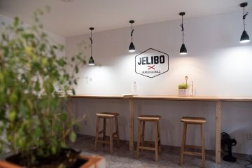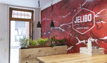 Interiér bistra Jelibo tvoří příjemný a světlý prostor. Hlavnímy prvky interiéru jsou dřevěné stoly a židle, které vytvářejí teplý a přátelský dojem. Na jedné ze stěn se nachází murál zobrazující strukturu masa která vyvažuje světlý interiér. Prsotor doplňují čerstvé květiny a bylinky.