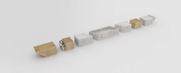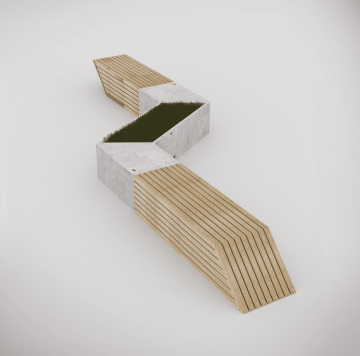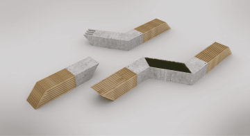 Návrh městského mobiliáře je postaven na konceptu jednotlivých dílů, které lze různě kombinovat a postupně skládat dohromady. Tyto díly jsou vyrobeny z betonu nebo dřeva a připevněny na kovovou konstrukci. Mezi tyto díly patří například posezení, stojan na kola a prostor pro záhon. Tímto způsobem můžeme vytvářet flexibilní a variabilní městský mobiliář, který je přizpůsoben různým potřebám a estetickým preferencím.