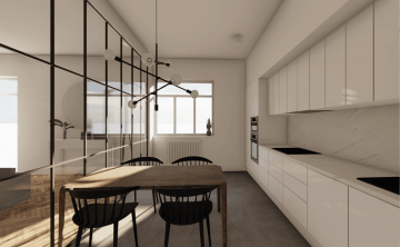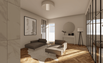 Rekonstrukce bytu v centru Ostravy. Byt funguje jako prostor pro krátkodobé tak i pro dlouhodobé bydlení. Objekt obsahuje kuchyni, obývací pokoj, ložnici, komoru, koupelnu se saunou a oddělenou toaletu. Celý byt je zařízený v minimalisickém vzdušném stylu s industriálními prvky. Jako propojovací prvek je zvolena textura mramoru jenž je využita například v koupelně, krbových kamnech, kuchyšké lince a záhlaví čela postele v ložnici.