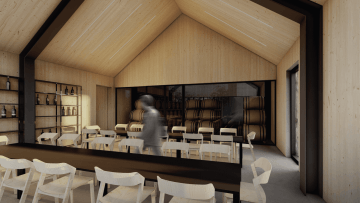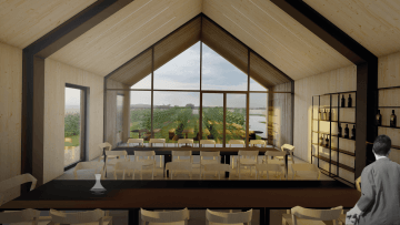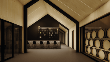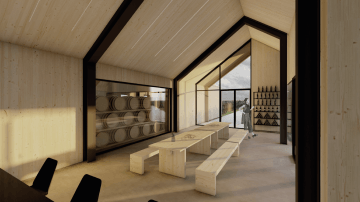 Podobu návrhu jsem zvolila především pro praktičnost při postupu výroby vína, toleranci k morfologii pozemku (spodní voda, téměř rovinný terén) a nižšímu financování při výstavbě. Koncept zachovává odkaz na okolní typickou architekturu, návaznost výroby, propojení výroby a veřejnosti (průhledy do technické části) a ekologickou stránku vinařství (fotovoltaické panely, zelená střecha, tepelné čerpadlo, opětovné využití dešťové vody, konstrukce z CLT panelů).